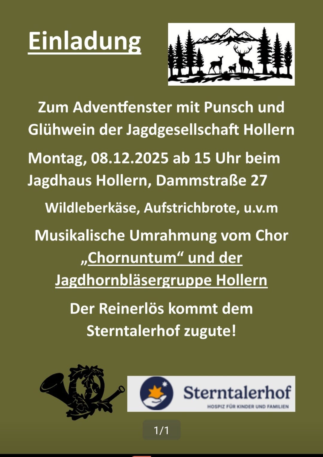 Adventfenster mit Punsch und Glühwein der Jagdgesellschaft Hollern